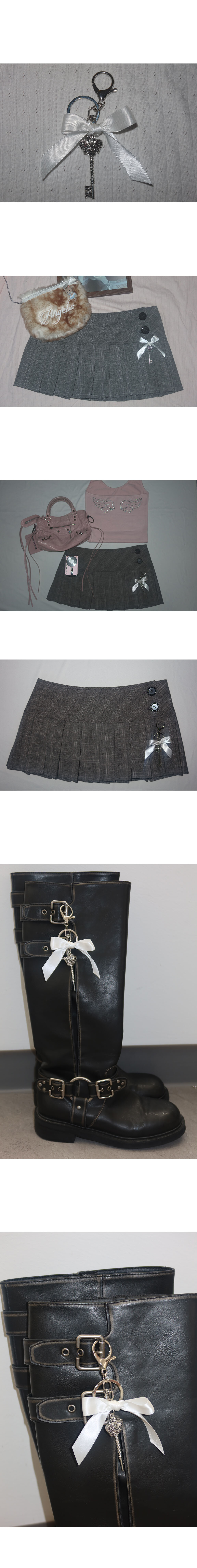 -공단 리본과 빈티지한 무드의 열쇠 팬던트가 독특한 무드를 연출