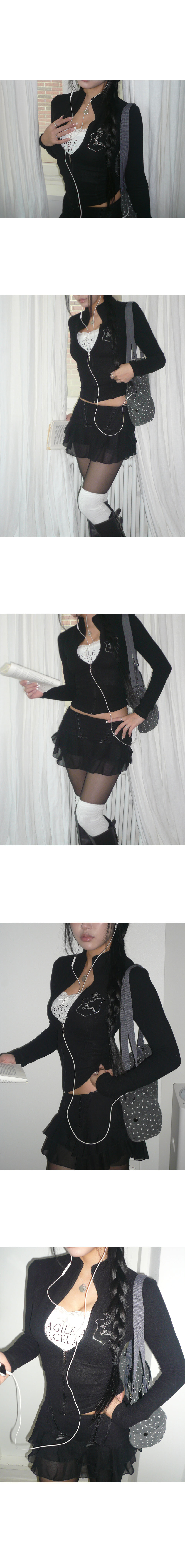-전체적으로 절개 라인이 많이 들어가 있어 바디라인을 따라 입체감이 살아나는 집업 -절개선을 따라 가이루빠 봉제 작업이 들어가 디테일이 탄탄하게 마무리됨 -프린세스 라인처럼 곡선을 따라 잡혀 있어 착용 시 슬림,글래머러스 해보이는 효과 - 플리스 느낌의 부드럽고 신축성 좋은 원단으로 편안한 착용감 -보온성이 뛰어난 소재로 FW시즌 활용도가 높음 - 슬림핏으로 제작되어 XS–S 사이즈 분들에게 추천 -사슴 핫픽스와 크라운 심볼이 더해져 Y2K 무드를 연출